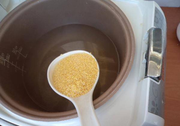 3.电饭煲锅里的水烧开后将小米入锅煲