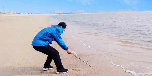 我们在沙滩漫步,享受着海风的清爽。我还在沙里捡到一些新鲜的蚬子,哈哈!回家可以做一碗鲜美的蚬子汤了!