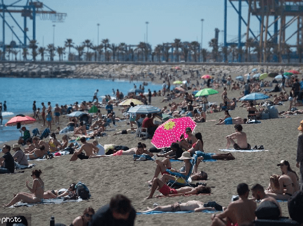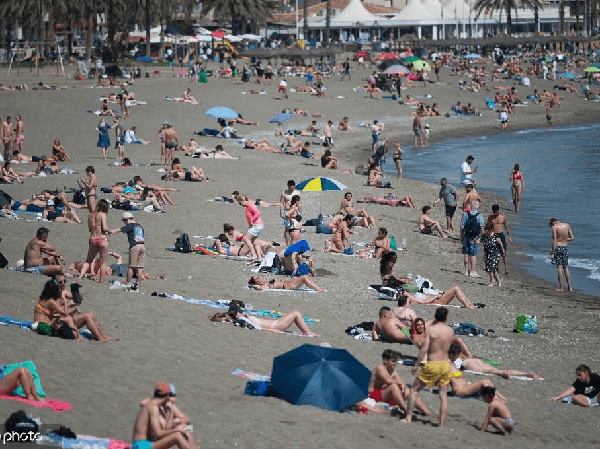 良好的天气和高温使安达卢西亚沿岸的海滩游客爆满。