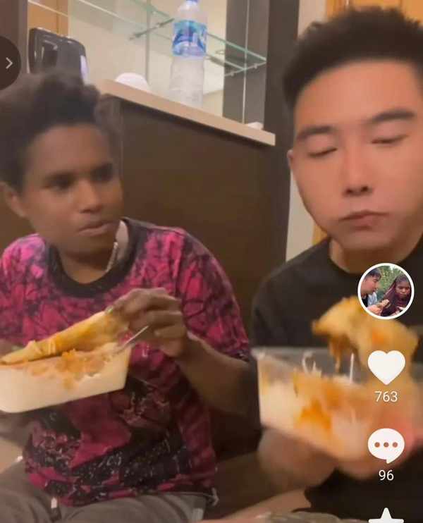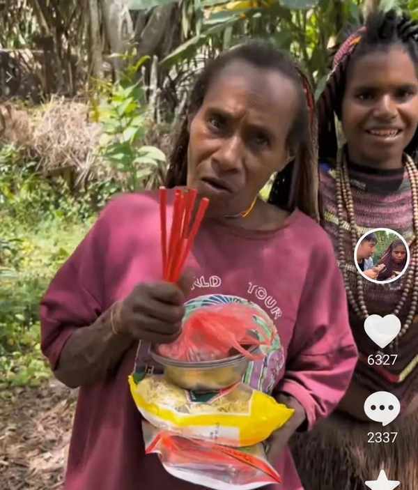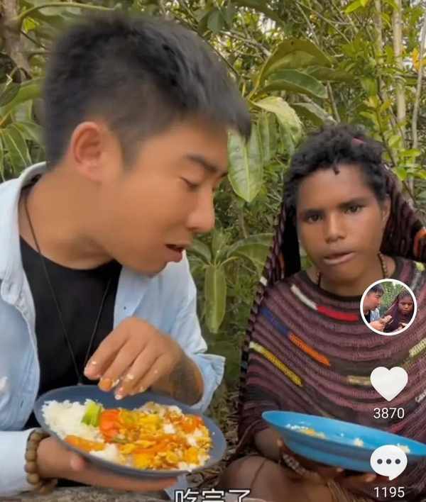 李忆待在巴布亚的那段时间,晚上离开从林,白天偶尔来看大娘一家人,从大娘的表情可以看出她很喜欢这个我们小伙子,每次来都给她带好吃的,有泡面,有辣椒酱,还有锅碗瓢盆。让大娘一家吃一顿自制火锅。