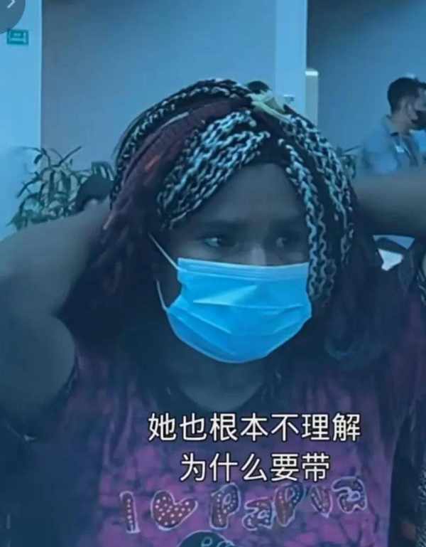 第一次出门,机场要求要戴东西,这是她第一次戴东西,东西事情都三年了,她竟然是第一次戴东西,这是哪个山卡拉住的原始人啊!