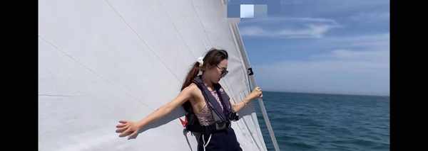 热心的船长看出了小美的心思,大方的演示了一些拍照姿势,靠着帆、扬起手、荡起双脚等一番操作下来,阳刚中又带着一丝娇羞,看得小美咯咯直笑,当即有样学样的开始了。