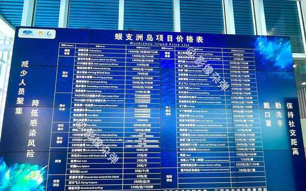 其次就是各种丰富的海上运动,像动感飞艇、海上摩托、彩虹拖伞、高端潜水等,这样的项目只要你有钱都可以去尽情玩耍,岛上还推出1980元的极限玩家。放一张蜈支洲岛的价格表,大家觉得这个价格什么水平?