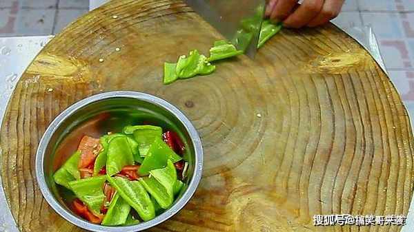 红椒半个,去籽后,切成三角片,青椒一个,去籽后同样切成三角片,放在一个盘里用来配色。