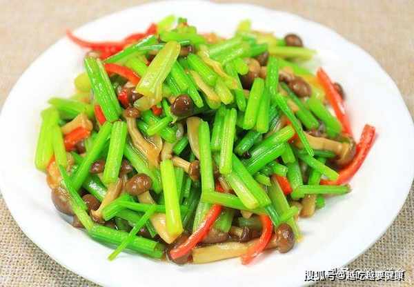 蟹味菇富含粗纤维而芹菜富含蛋白质、维生素,二者搭配提供人体所需要的营养元素。