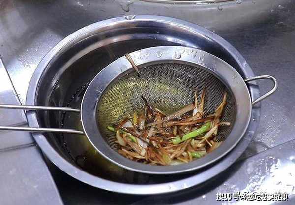 2.把锅烧热,多加一些植物油,油温五成热时倒入葱丝