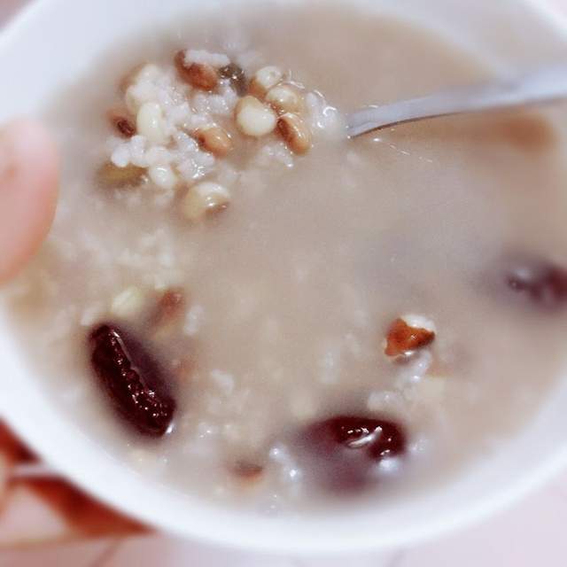 材料:燕麦1杯、红豆1/2杯、红枣10个、冰糖1~2块