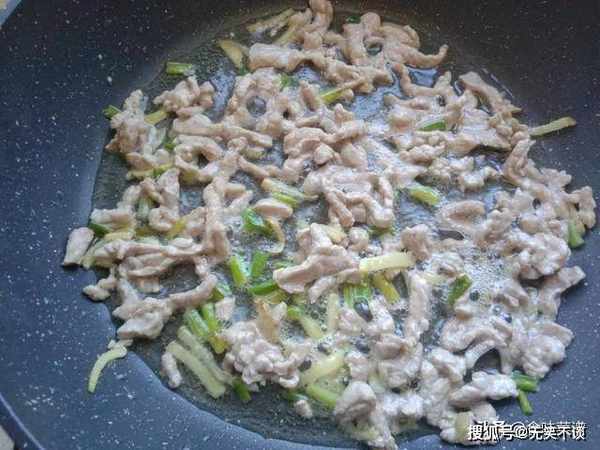 3、猪肉切成长条,用生抽、盐、料酒,腌制10分钟入味。