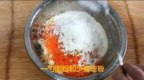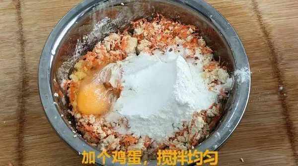 加个鸡蛋,搅拌均匀,面粉不要太多,能让豆腐和胡萝卜成形即可,