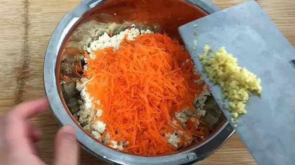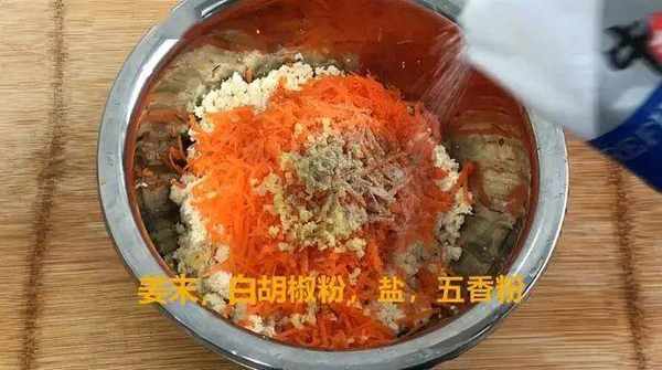 胡萝卜擦细丝,放入盆中,放入姜末,