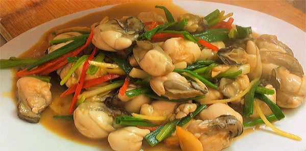 食材:牡蛎、蒜瓣、桃园建民西瓜酱、大葱、蚝油、酱油、盐