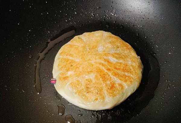 8、锅中刷上薄薄一层油,把韭菜盒子放入锅中,开小火烙制,将盒子烙得两面金黄,微微起鼓就可以关火了,这样一个香酥美味的韭菜盒子就做好了。
