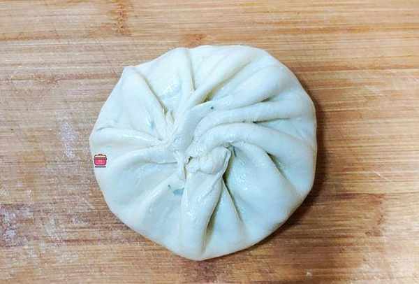 7、将准备好的馅料放在手抓饼皮中间,用包包子的方法包好,轻轻按压成馅饼的形状,之后就可以放入锅中烙制了。