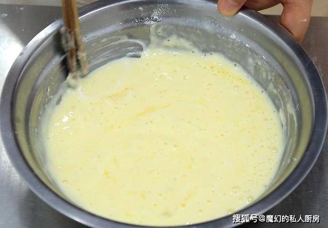 1.在盆中打入2个鸡蛋,加入白糖10克,面粉50克,不喜欢吃太甜的白糖可以不放,倒入250毫升的酸奶,搅拌成细腻的酸奶糊备用,酸奶糊中不要有面疙瘩,会影响成品的口感。