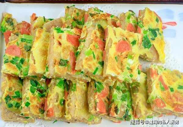 5.时间到再次翻面,保持小火大约烙制5分钟,烙制蛋液全部定型,表面呈金黄色时即可出锅,把烙好的饼切成均匀的小块,这道清香柔软的燕麦片鸡蛋饼就做好了。