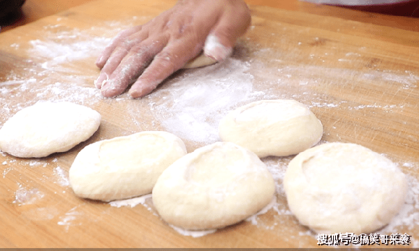 在案板底部撒上面粉,把发酵好的面团取出多揉一会,排出里面的空气,然后把面团搓成长条,切成大小均匀的面剂子,再按扁按圆。