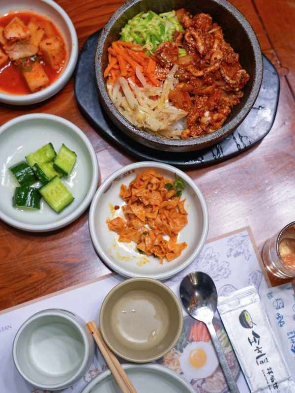 菜品都是经典的韩餐,点了传统的石锅拌饭,还点了八爪鱼拌饭,烤猪肉拌饭,每一种拌饭都还不错。