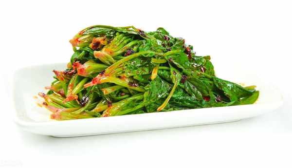 1.把菠菜去掉根,清洗干净控干水,在锅中加入清水,烧热至沸腾,放入几滴植物油,把菠菜放入焯水,一分钟立马捞出,放入凉开水中过凉,攥干水分切小段,放入盘中备用。