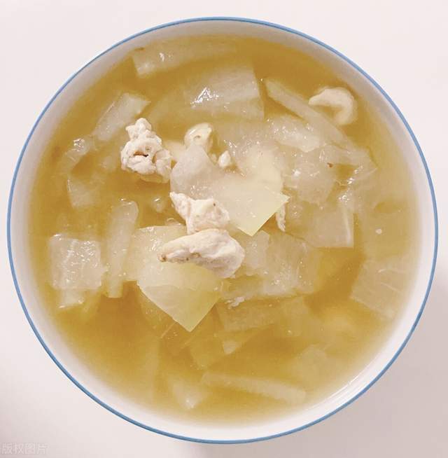 1、冬瓜去皮,切成小块。鸡肉切成小块备用。