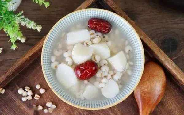 红枣10粒,山药一段,大米1杯,冰糖、蜂蜜各适量。将红枣洗净,开水浸泡20分钟,山药去皮、洗净、切成小丁,大米洗净,浸泡30分钟。锅置火上,放入大约4杯水的分量烧开,将泡好的大米放进锅内大火烧开,转小火煮至粘稠。依次放入红枣、山药、冰糖,继续熬煮15分钟。最后,淋入少许蜂蜜即可。
