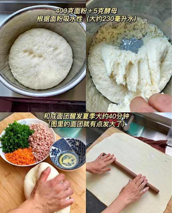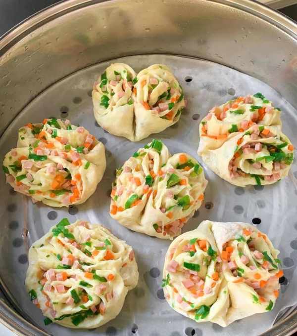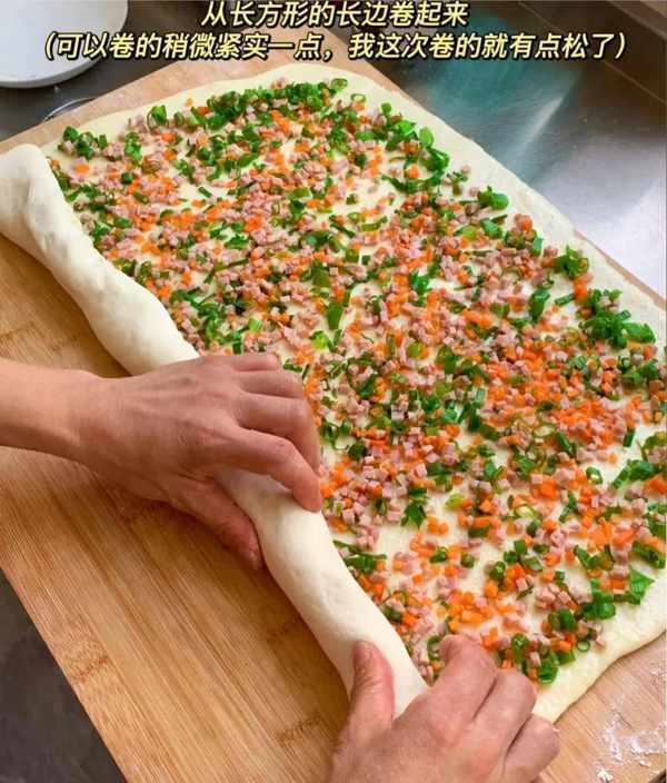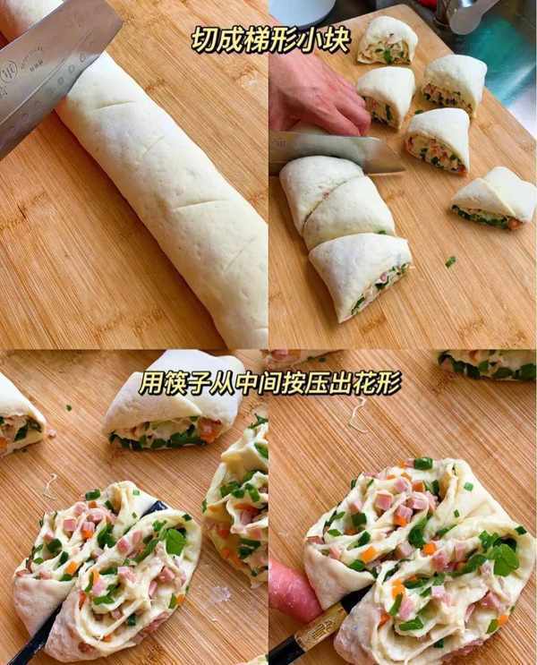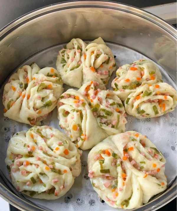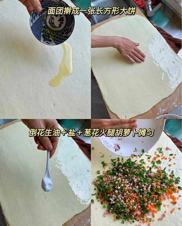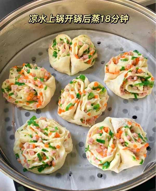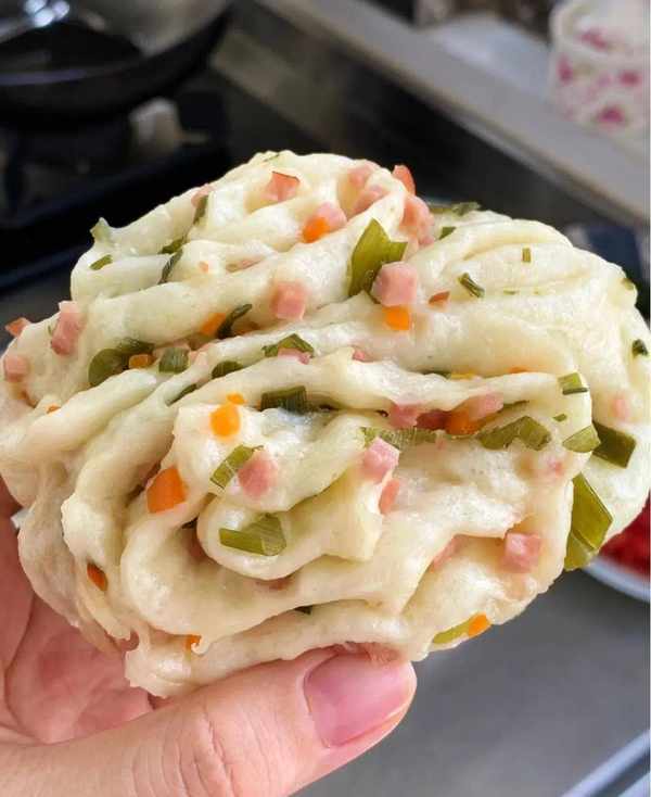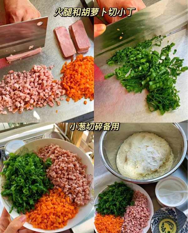 食材:火腿、胡萝卜、小葱、面粉、酵母