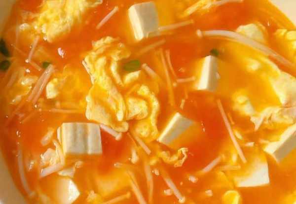 1、番茄去蒂,用食盐搓洗干净表面,再清洗干净切成块。豆腐切成小块,焯水去除豆腥味。金针菇掰开清洗干净沥干水分备用。