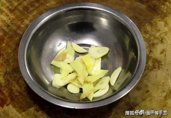 3.大蒜2粒,切成片,生姜一块也切成片备用。