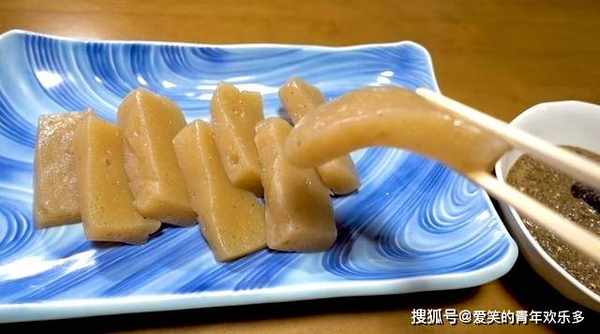 在里面添加石灰等,最后放在锅中煮沸腾,慢慢冷却后,就凝结成块,有点像做豆腐。用刀子将它一块块切开,最终就得到一块块弹弹软软的魔芋块。