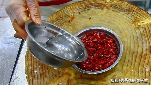 准备一个小盆,放入一大把花椒,三把干红椒,泡在清水中,花椒和干红椒用水泡一下,在炒的过程中,火候好掌握,不容易焦糊,更出味。