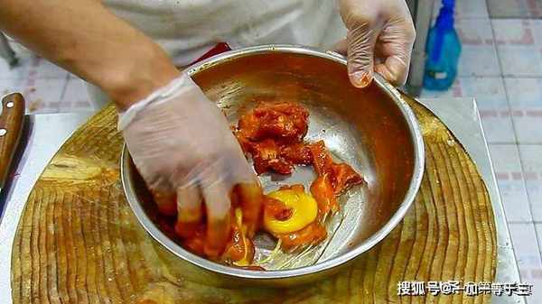 打入一个鸡蛋,顺着一个方向搅拌上浆,加入一小把吉士粉,再次上劲,吉士粉为了增色增香,家庭食用可以不放。