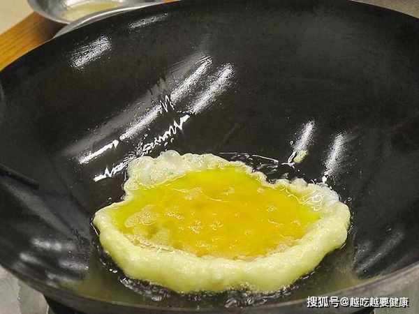 锅内烧油,倒入蛋液快速搅散,翻炒至定型倒出来备用。