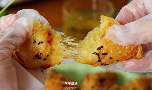 包好后一定要用叉子沿边缘推一下,保证蛋挞的接口是闭合的;