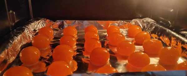 1.将生的鸭蛋黄喷上白酒放到烤箱烤熟,上下火180°烤10分钟,还是根据自己烤箱来。