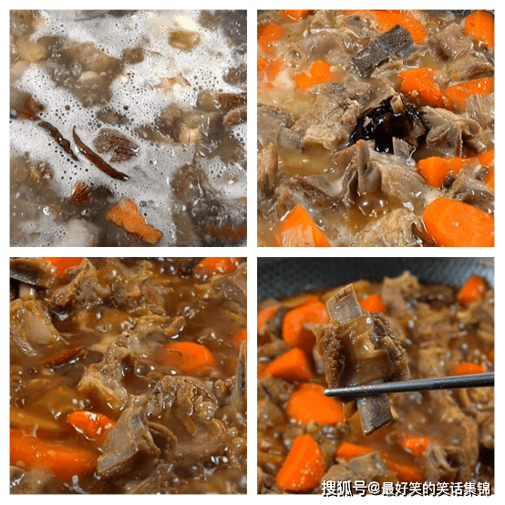 6、放点食盐、冰糖,继续焖煮25分钟,煮至胡萝卜熟透,加点老抽增色,开成大火收汁,最后撒些青蒜苗,美味即成。
