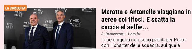 国际米兰为了这场战斗,举起了全军的主动权。张康阳和奥西里奥跟随球队来到了客场。马洛塔和安东内洛也离开了,但由于足协例会,只能推迟一天。两人非常大胆,选择带着随队出行的球迷同机。据社交网站相关人士透露,此行期间,两位CEO与球迷进行了友好交流,都谈到了对点球大战的担忧,可见国米已经意识到了这一点。