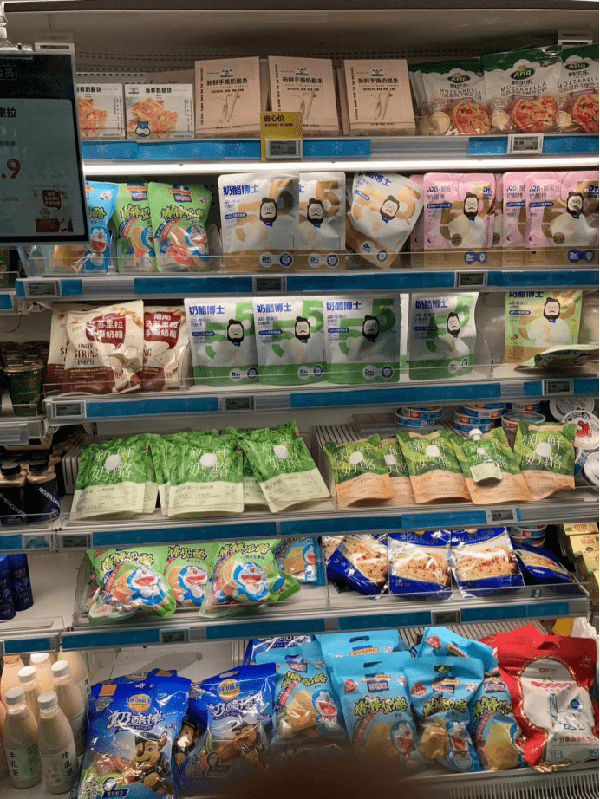 ▲卖场中不同品牌的奶酪棒产品,图/氢消费摄