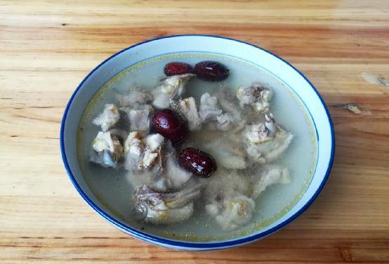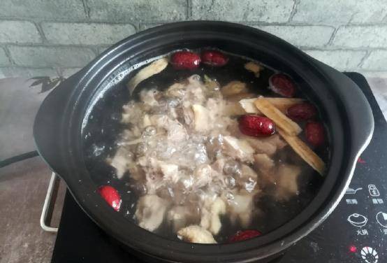 2、锅内加入适量清水,大火烧开,加入黄芪、红枣同煮,加入鸡肉文火煮20分钟,加适量盐调味。