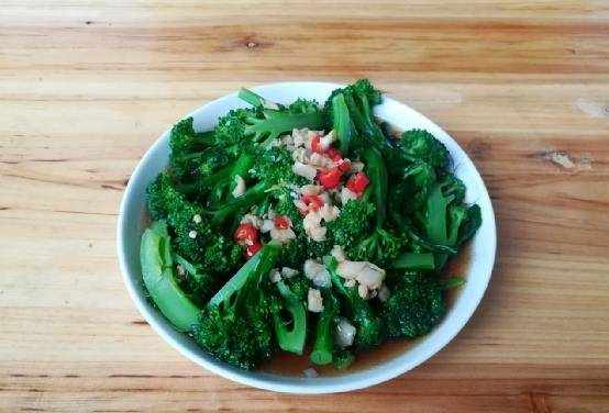 【熟西兰花】材料:猫西兰花半个,蒜头3瓣,尖椒2个,调料:食用油几滴,盐适量,生抽1汤匙,蚝油1汤匙。