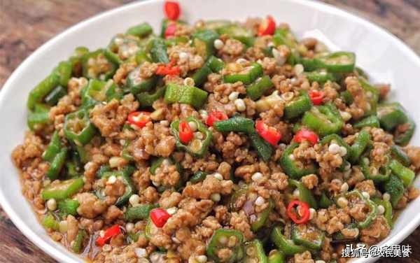 食材:秋葵10根,猪肉500克,姜1小只,蒜半只,生抽适量,老抽适量,盐适量,油适量