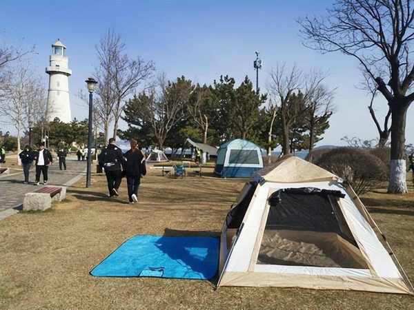 昨日上午,在悦海公园灯塔广场东侧的绿地上,大大小小的帐篷散落开来,春游的氛围感顿时扑面而来。在帐篷下小坐,抬头便是地标建筑灯塔,回头则是美不胜收的海景,这样的舒适惬意令人全身心放松。