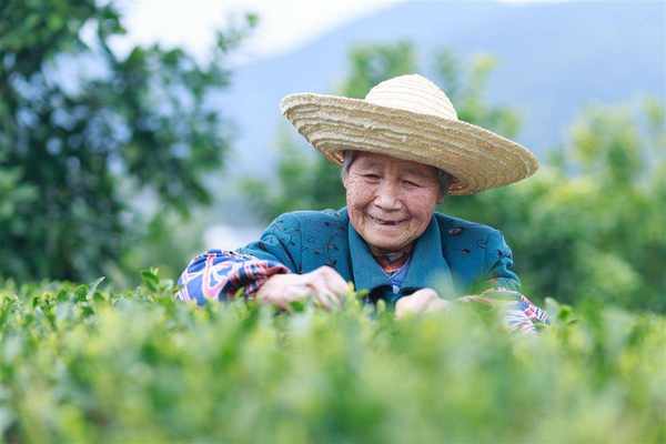 走进“中国名茶之乡”——江西省上犹县梅水乡园村茶园基地,举目环视,四周群山叠翠,茶园宛如绿毯,青瓦白墙的特色民居散布在山脚下。“一定要做到一芽一叶,千万不能用手指甲去掐我们的茶叶。”明前的春茶,是园村一年当中茶品质最好的时候,此时茶园萌芽尚新,漫山遍野的采茶人正在陈开敏的叮嘱下,精挑细选地摘下片片翠绿。