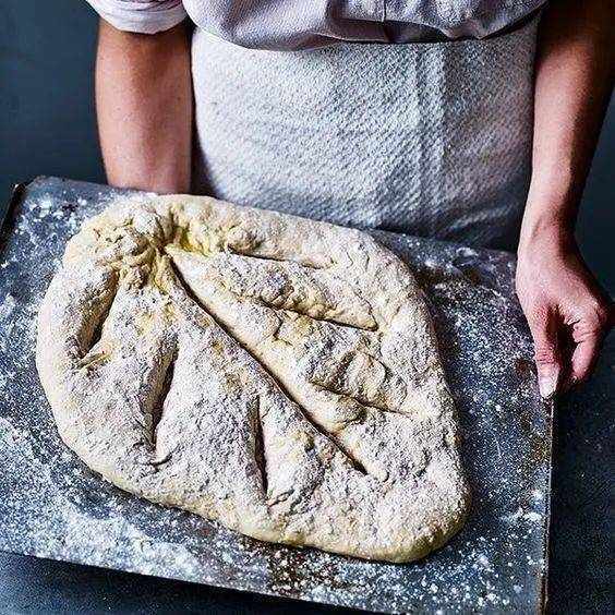 通常Fougasse烤制前会在面饼上切几刀,形成树叶一般的形状,为了更快地成熟,也为了好看。