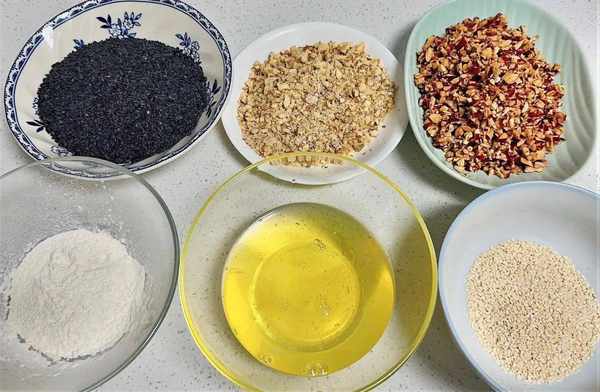 黑白芝麻、核桃仁可以用熟的,也可以用生的,看自己选择,但是提前烤熟,做出来会更香。
