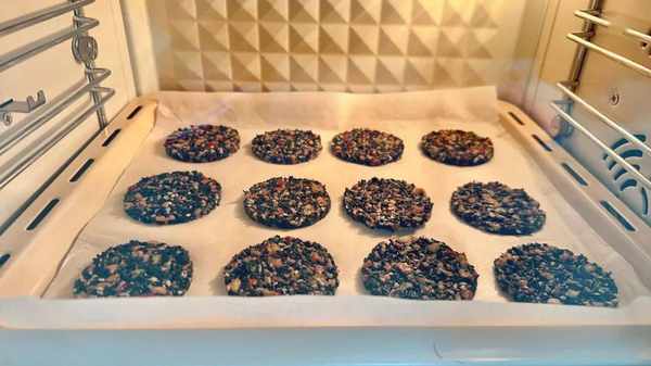 4. 所有芝麻薄饼全部摊好,送入提前预热好的烤箱,145度烤30-40分钟 (根据自家烤箱的脾气调整温度哦),温度不宜太高,不然容易烤糊。