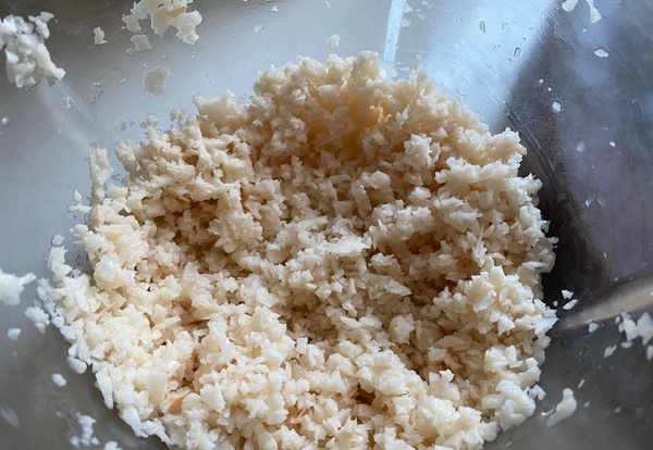 步骤2:莲藕去皮去块,用料理机搅成碎末。