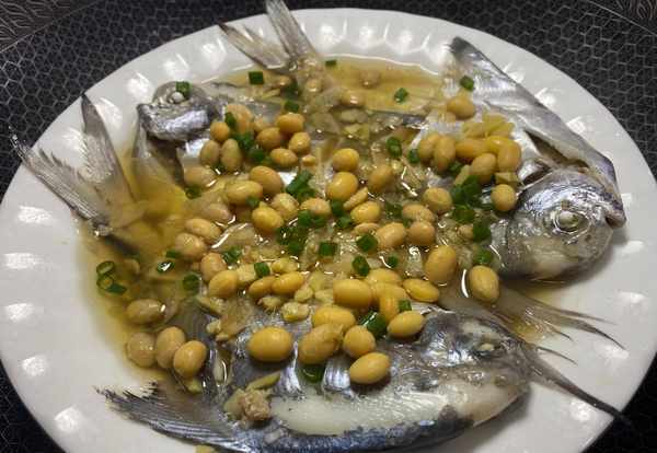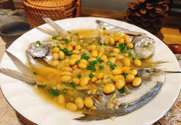 食材:鲳鱼、豆酱、葱姜蒜、猪油、食用油。