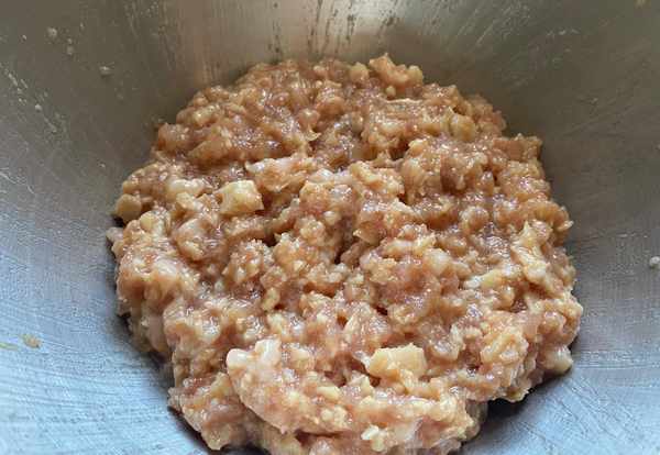 食材:莲藕、猪肉、鸡蛋、蔬菜粒、盐、料酒、酱油。