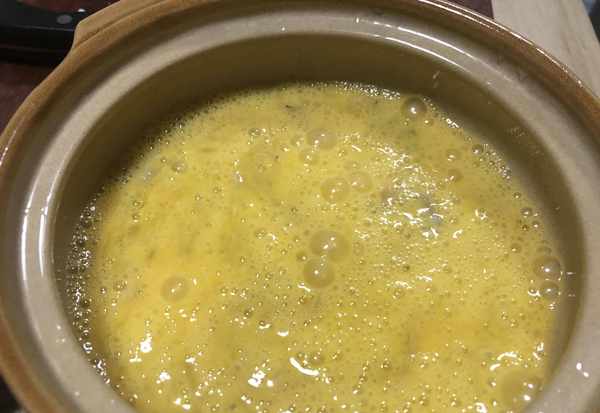 步骤2:然后打入3个鸡蛋,加勺料酒和盐搅拌均匀。