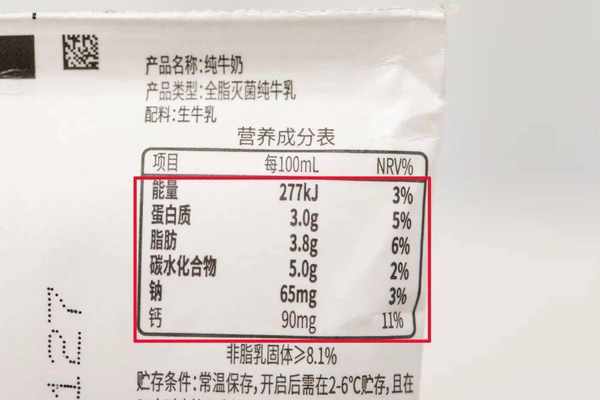 下图是喀喇昆仑纯牛奶的营养成分↓