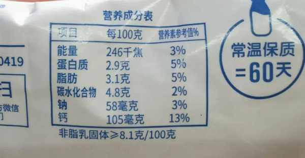 每 100 克牛奶含有 3.3 克,比市面上很多纯牛奶的蛋白质含量都要高。
